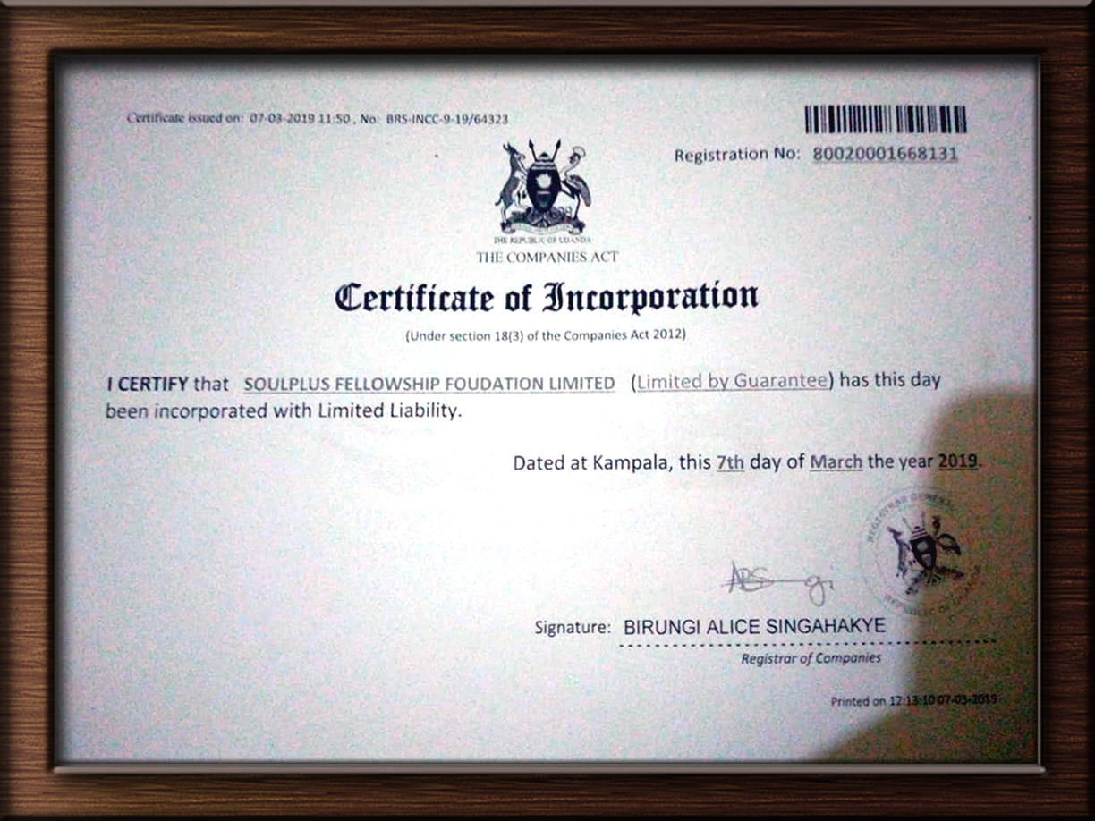 Certificate of Registration Soul Plus Fellowship Foundation Limited 2019-03-07