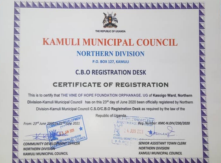The Vine of Hope Foundation Orphanage UG We are an upcoming organization hoping for more support in anyway possible that can help in uplifting the lives of these little orphaned children. For the Lord has given us life that we cherish in but besides that there is a needy crowd aside that we need to share the little with. It's not too much needed but any kind of support is highly welcomed, thank you Isabirye Taliki .