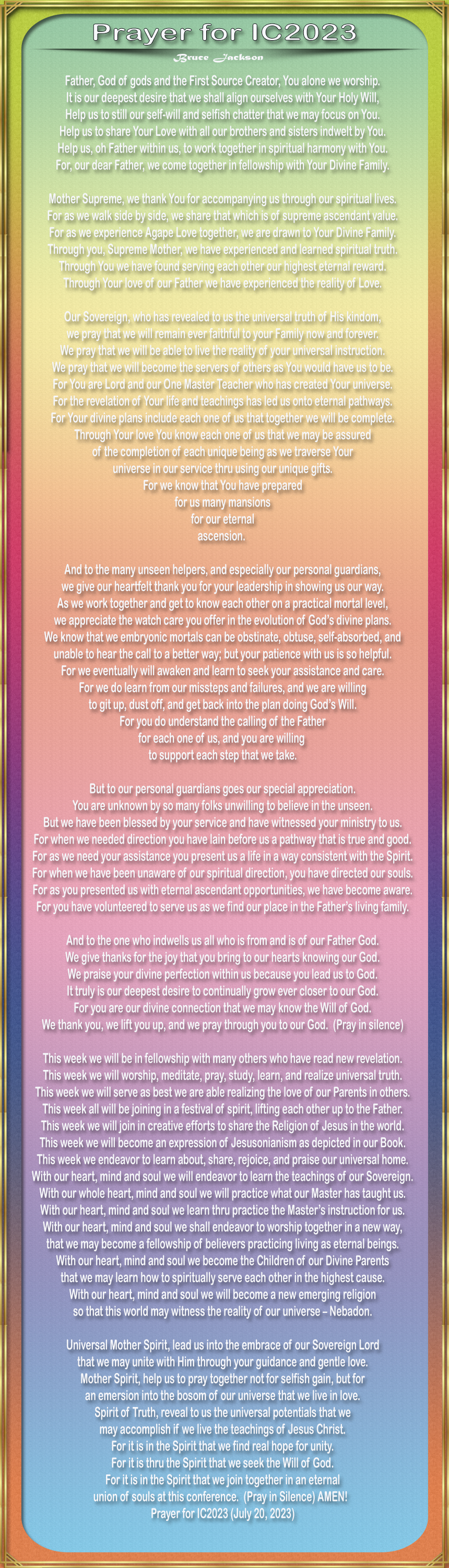 PRAYER BY BRUCE JACKSON FOR IC-2023