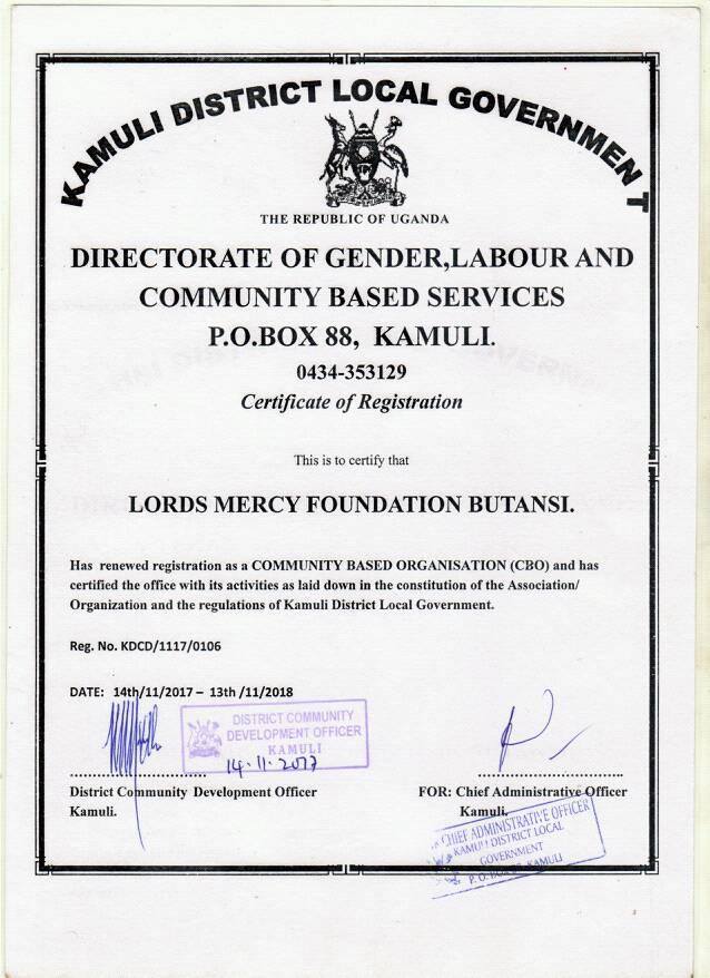 Certificate of Registration Kamuli District Uganda