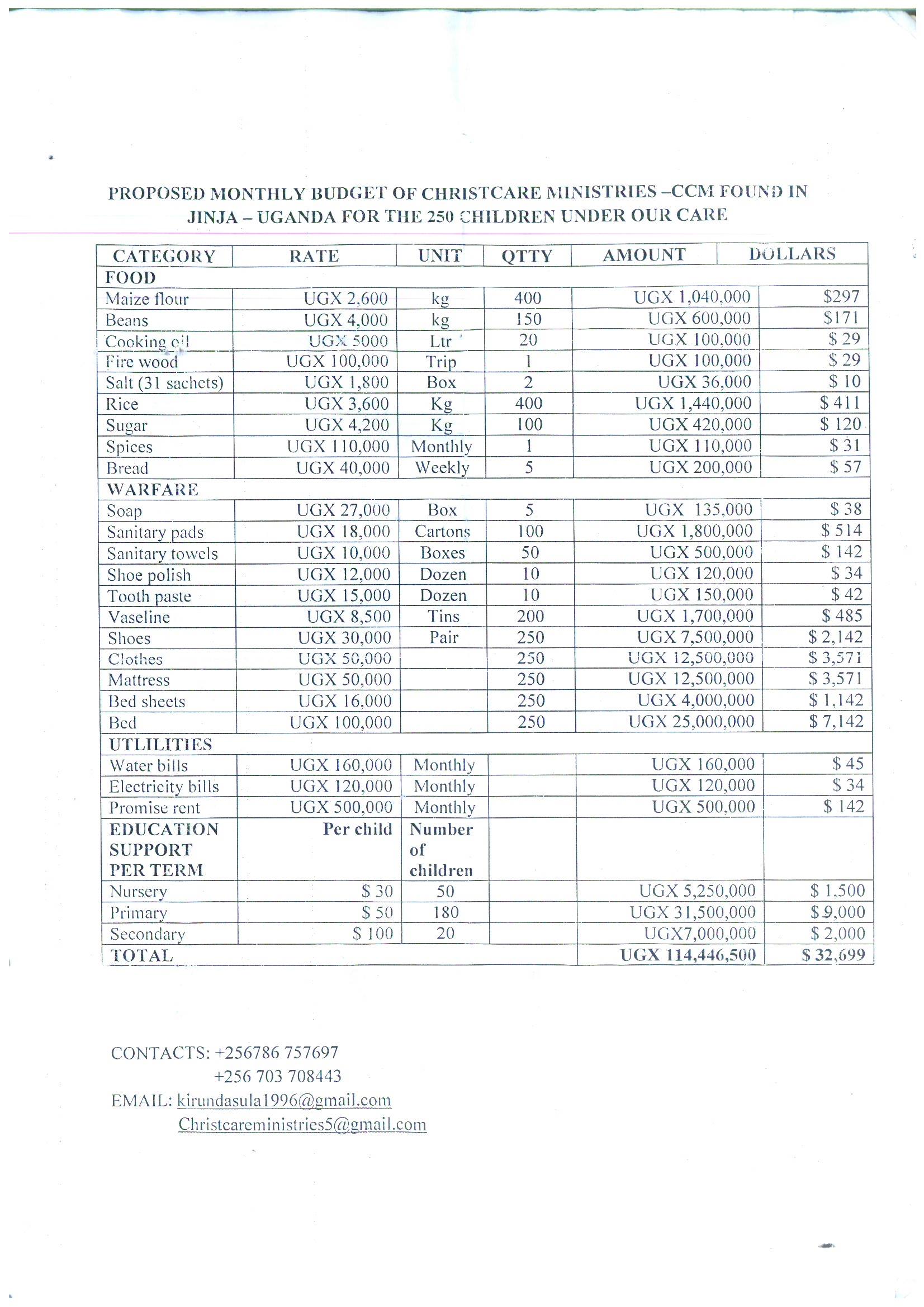 Monthly Budget and Yearly Education Expenses