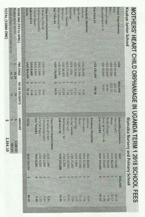 Mother's Heart Child Orphanage School Budget