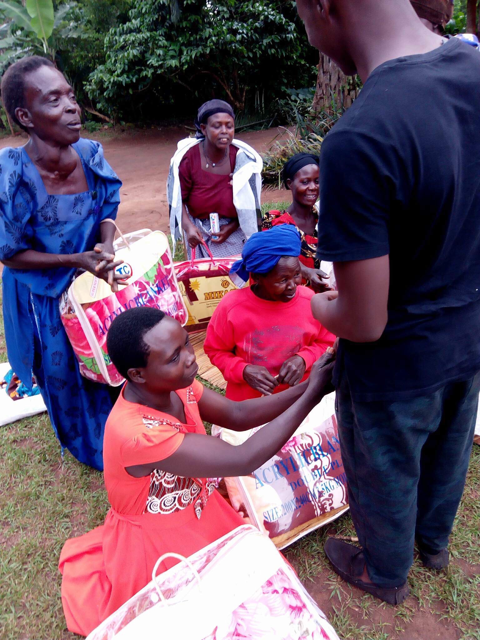 Widows receiving seeds, blankets & bibles