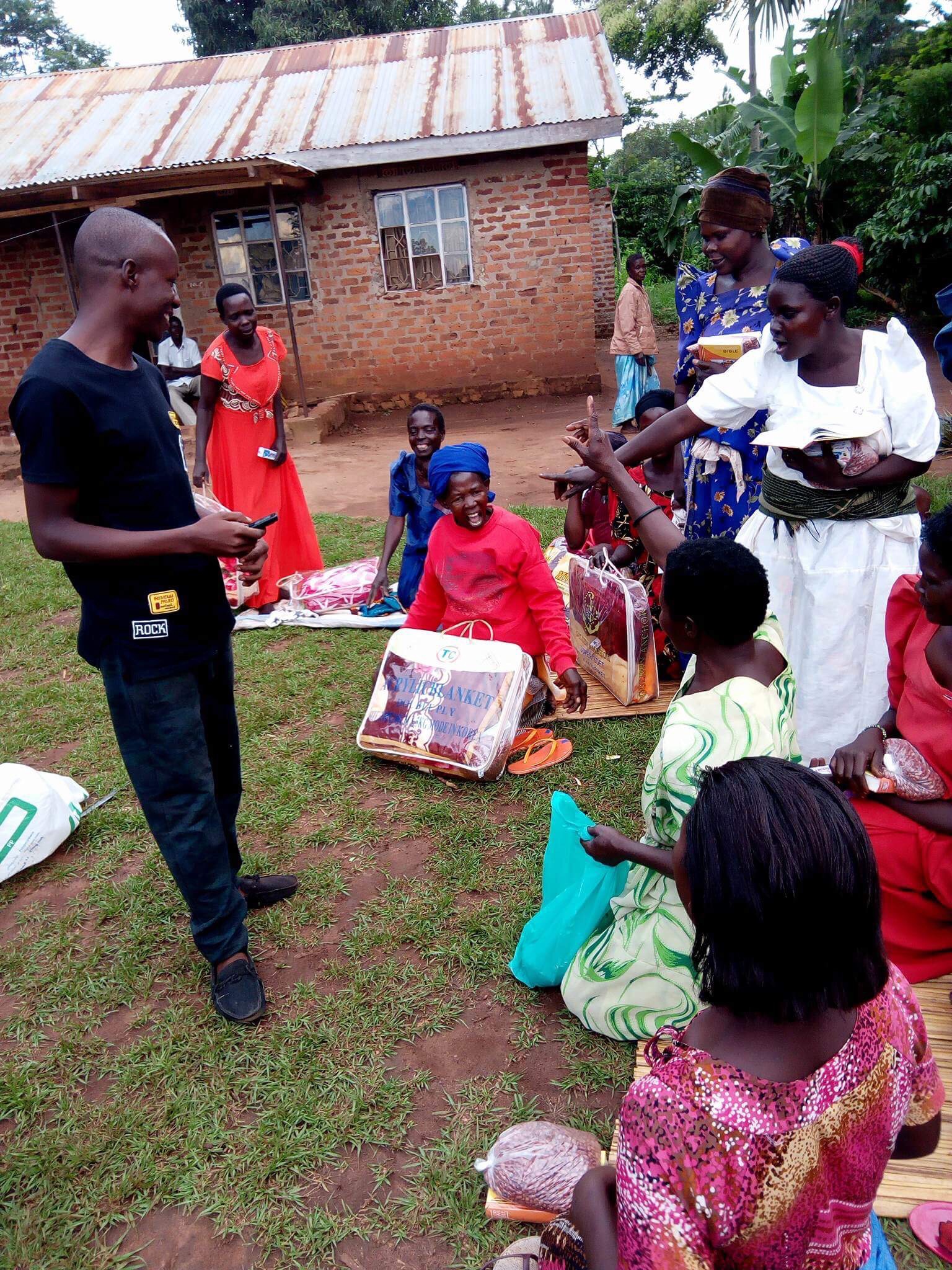 Widows receiving seeds, blankets & bibles