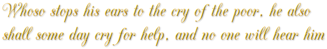Whoso stops his ears to the cry of the poor, he also shall some day cry for help, and no one will hear him