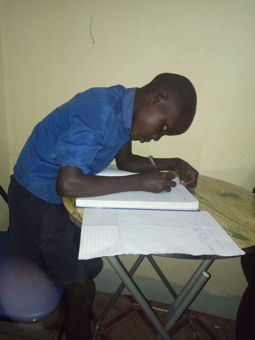 Tonny writing a letter to Monica