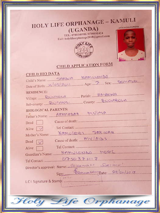 Holy Life Orphanage Kamuli Uganda Director Sekamate Salimu