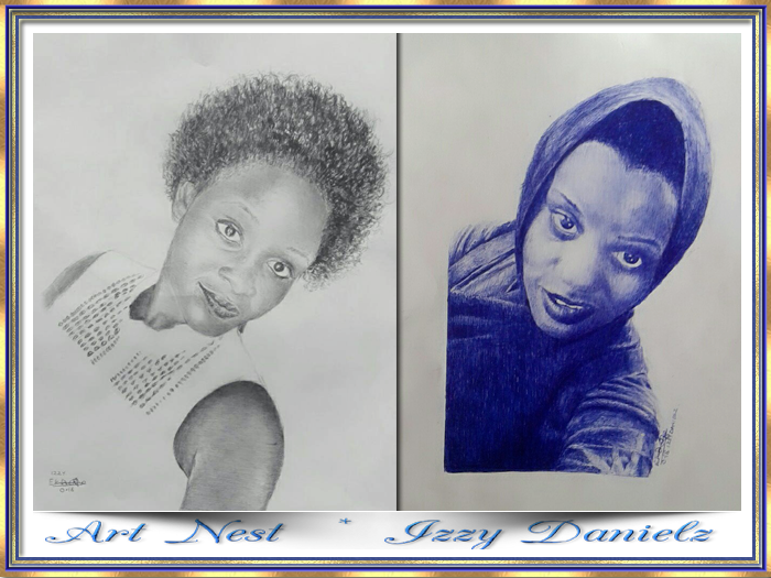 Art Nest Izzy Danielz - If the world needs Art, the people in it will need me. My profession explores visual arts in both the tradition and modern arts of drawings, painting and African crafty works. The type of visual arts and media we use has carved out a creative niche in drawing realistic and hyper realistic works in painting both abstract and realistic art work, with the techniques we use, good at using media like ink from ball point pens, oil based and acrylics or canvas, water colour, charcoal pencils, oil pastels on card and found objects like buttons and bottle caps when doing the modern art, clothes or traditional materials to execute our work.
