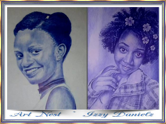 Art Nest Izzy Danielz - If the world needs Art, the people in it will need me. My profession explores visual arts in both the tradition and modern arts of drawings, painting and African crafty works. The type of visual arts and media we use has carved out a creative niche in drawing realistic and hyper realistic works in painting both abstract and realistic art work, with the techniques we use, good at using media like ink from ball point pens, oil based and acrylics or canvas, water colour, charcoal pencils, oil pastels on card and found objects like buttons and bottle caps when doing the modern art, clothes or traditional materials to execute our work.