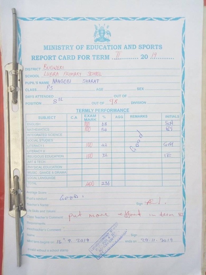 Report Cards 2nd Term 2019 Lubira Primary School Bugweri