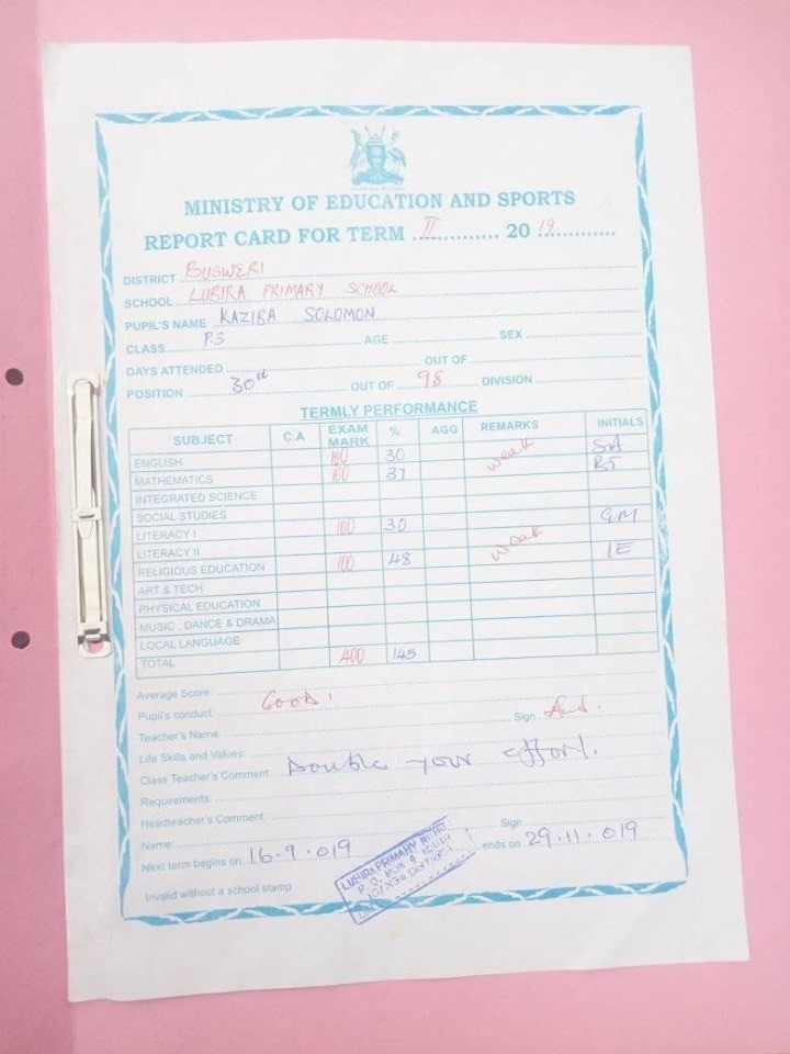 Report Cards 2nd Term 2019 Lubira Primary School Bugweri