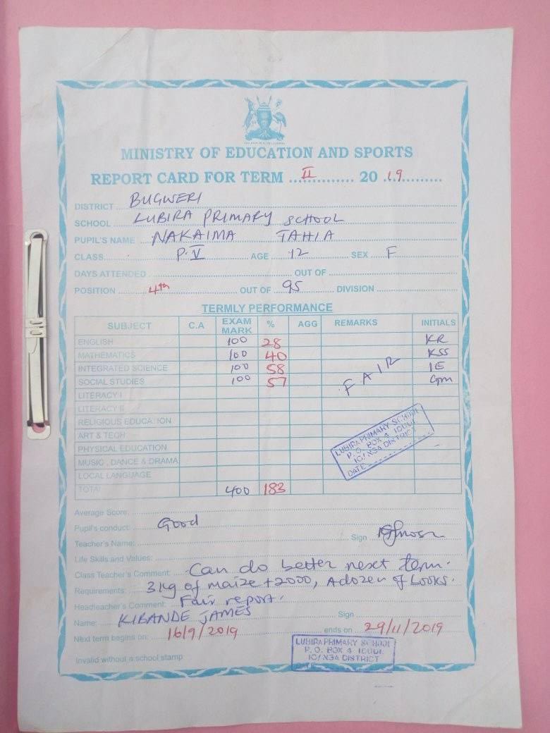 Report Cards 2nd Term 2019 Lubira Primary School Bugweri