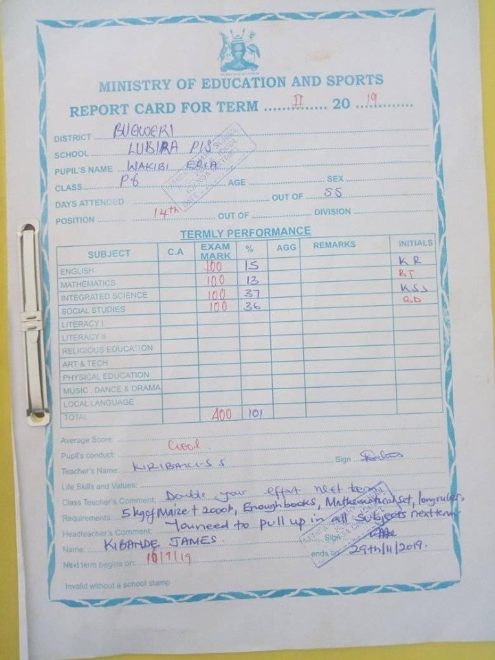 Report Cards 2nd Term 2019 Lubira Primary School Bugweri