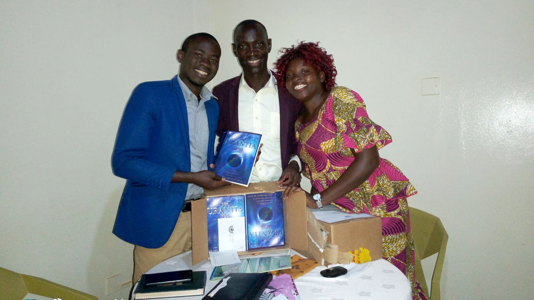 Moses Kaharwa & Musagala Diana Caroline Present Matte Jockas a copy of the 5th Epochal Urantia Revelation at the first meeting of the Urantia Uganda August 2020 Conference Planning Committee.