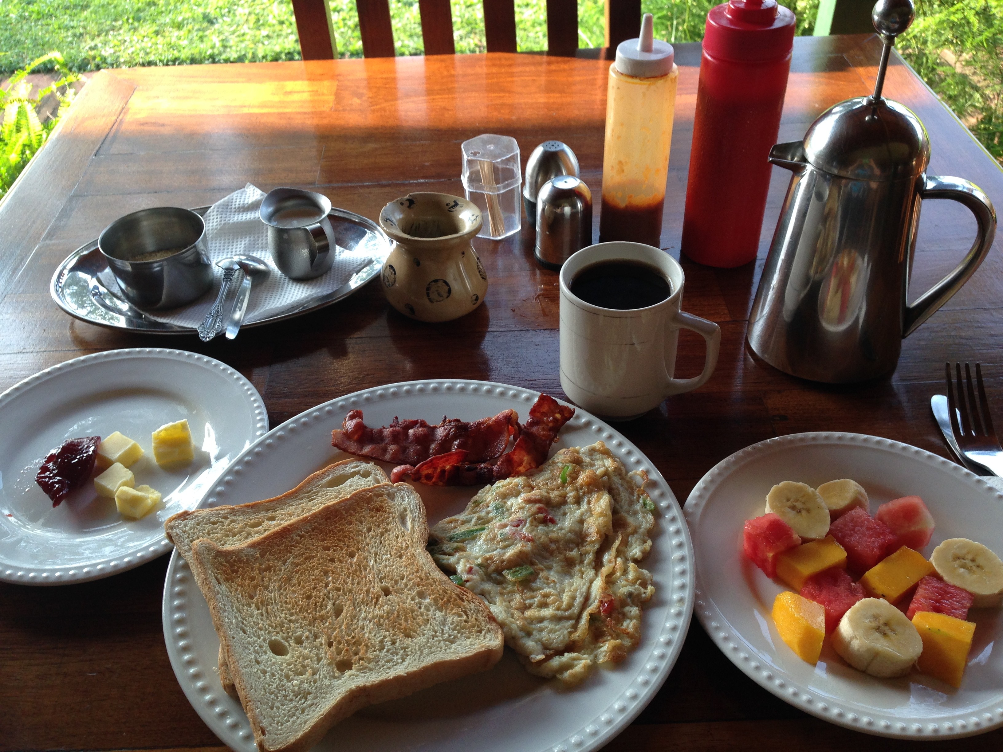 Breakfast the first morning in Jinja at Surjio's Guesthouse & Pizzeria.