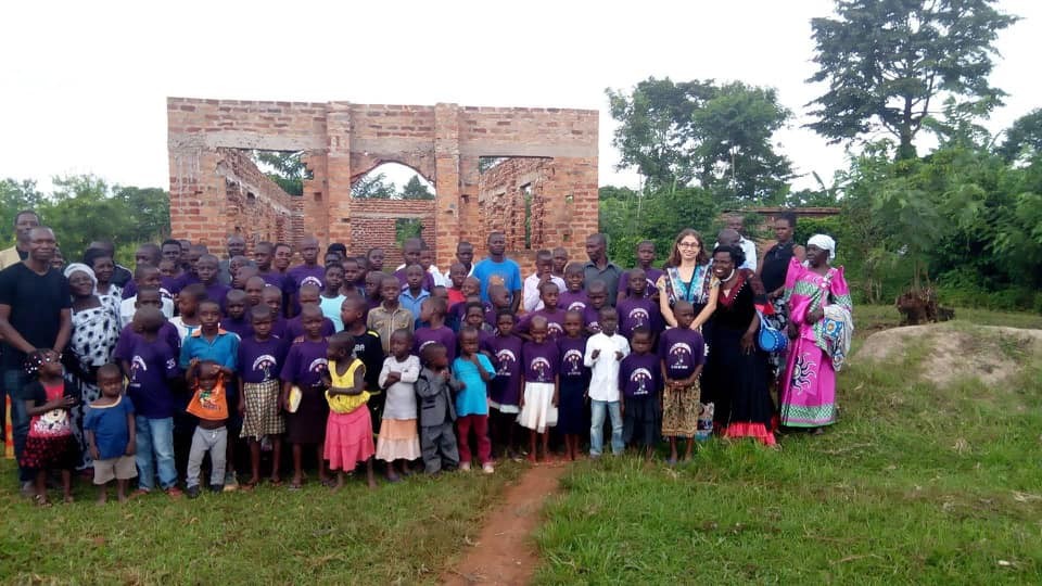 Kiwungu Christian Church new building under construction. Pastor George recognized a donor from Kampala, Uganda as just agreeing to provide the roof panels.