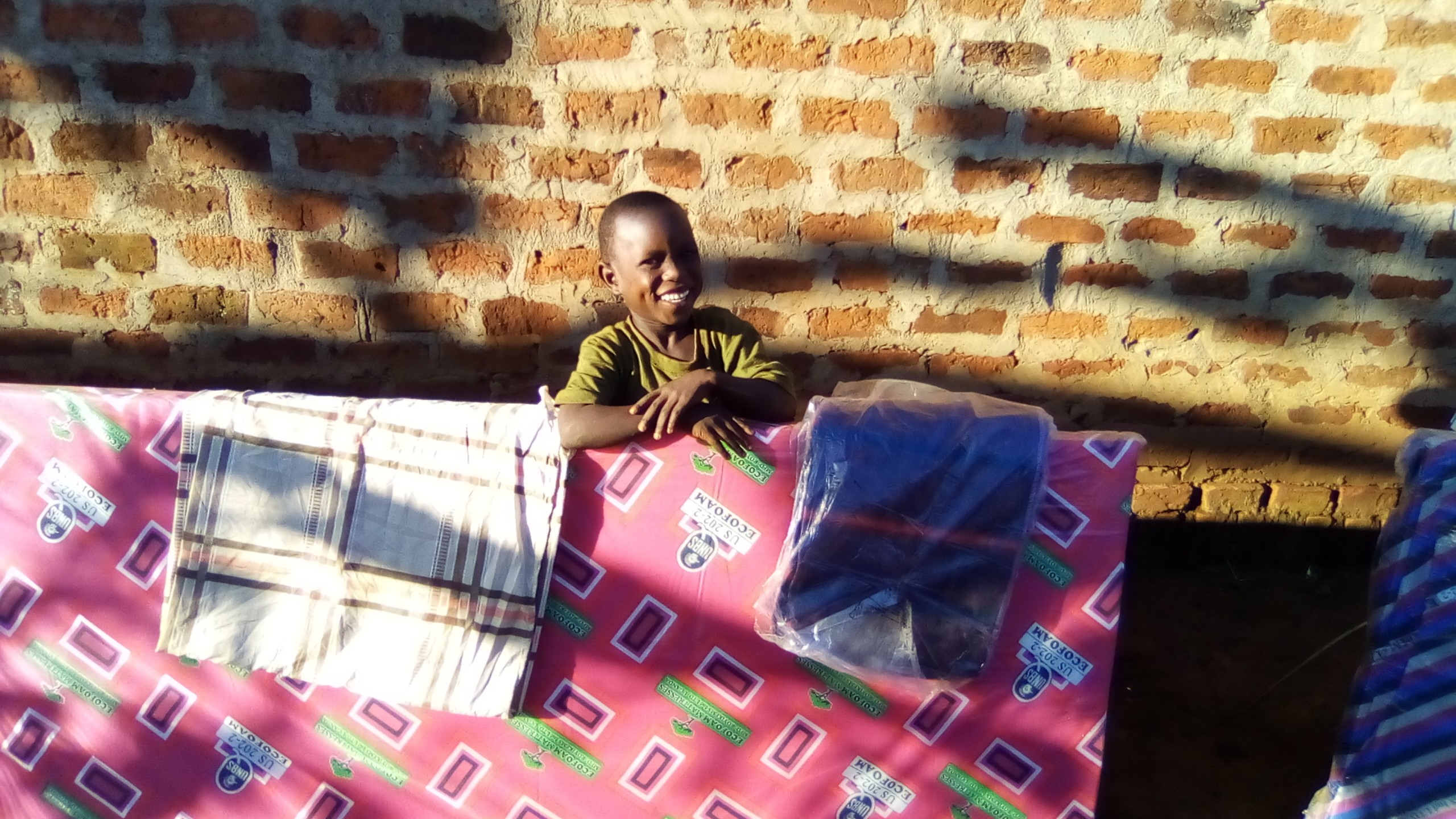 He was very happy after receiving a mattress, bedsheet and blacket.