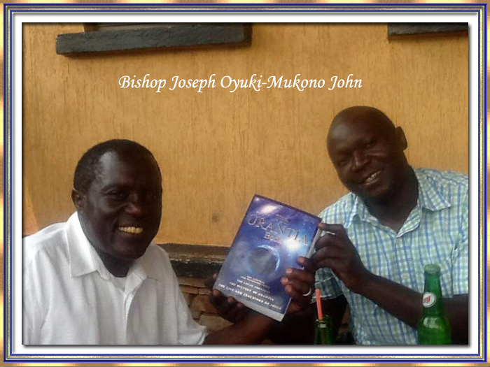 Bishop Joseph Oyuki receiving his Urantia Book from brother Mukono John January 2020