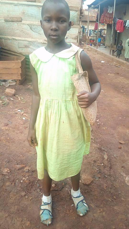 Ntono Zuena in her school uniform, with her bag that she received from USA from mom JBingham.  This day is  for her also to be posted.