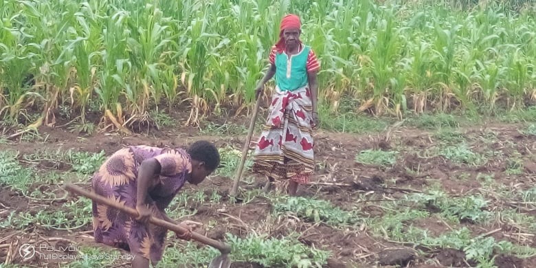 Some helpers weeding for payment