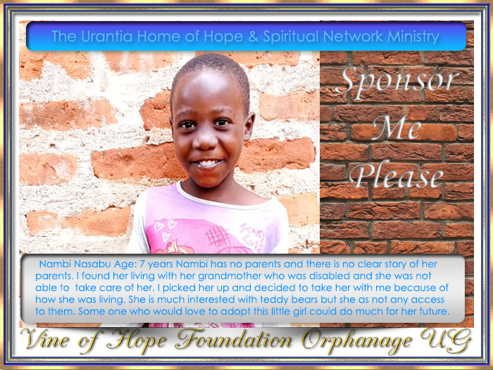To Sponsor this child click the email link below to open your email client with a letter addressed to The Vine of Hope Foundation Orphanage Director Isabirye Taliki