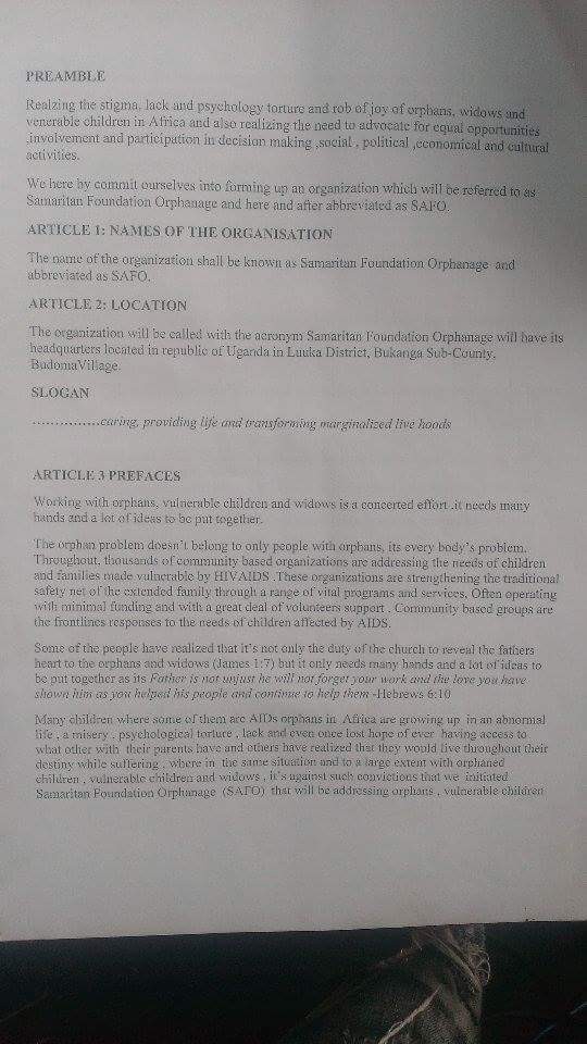 Samaritan Foundation Orphanage Constitution