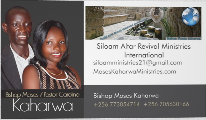 Bishop Moses Kaharwa - Pastor Caroline - SILOAM ALTAR REVIVAL MINISTRIES INTERNATIONAL - Our Ministry has presently seven hundred Churches who are working with us to establish Divinity Unity as a single body and family of Christ internationally.