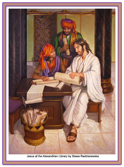 Jesus, Ganid, and Gonod at the Library in Alexandria By Slawa Radziszewska