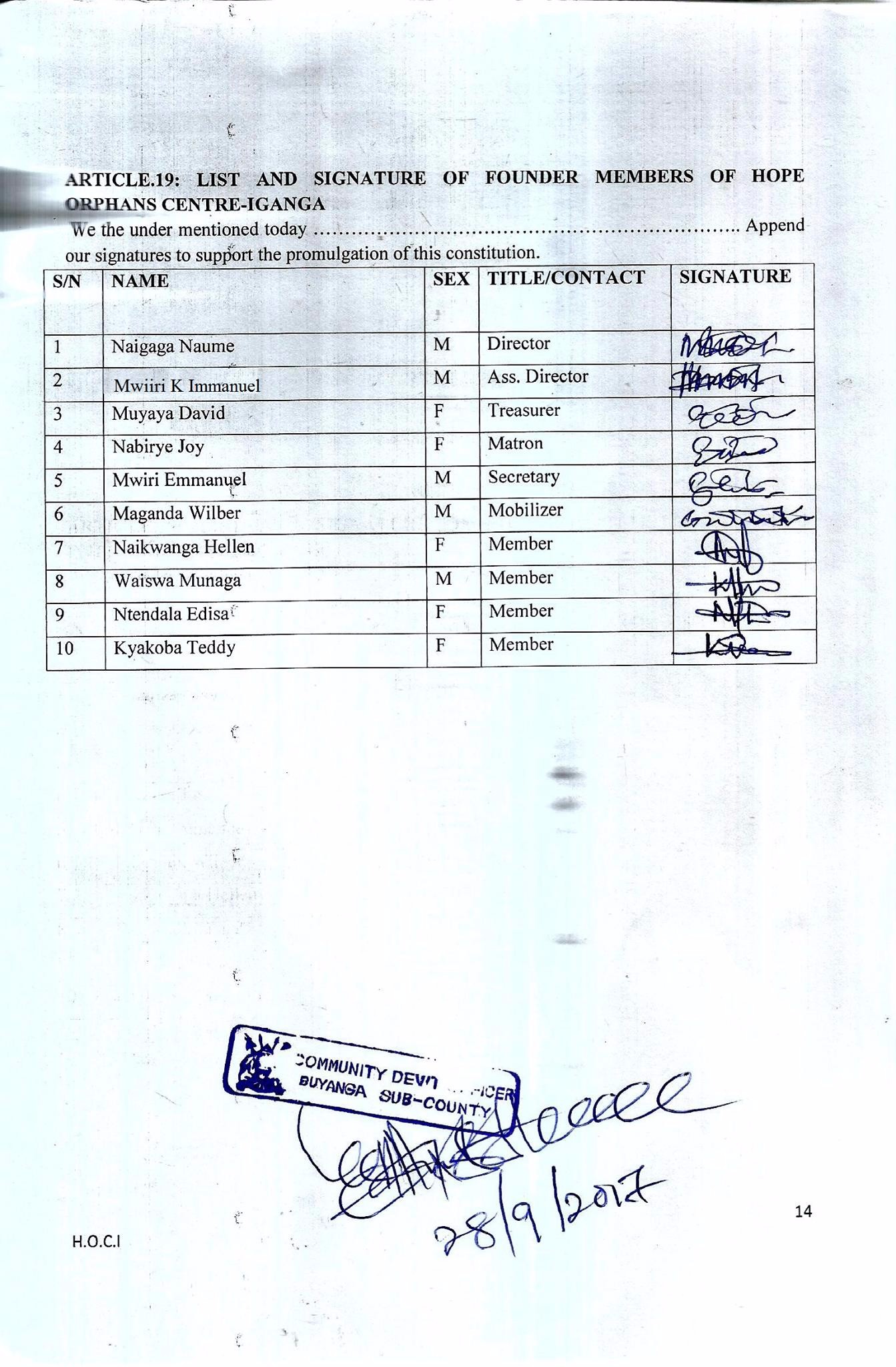 Hope Orphans Centre-Iganga,Naigaga Naume,Board of Directors,