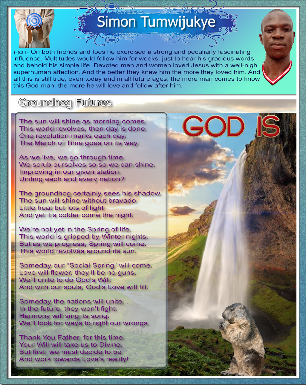 149:2.14 On both friends and foes he exercised a strong and peculiarly fascinating influence. Multitudes would follow him for weeks, just to hear his gracious words and behold his simple life. Devoted men and women loved Jesus with a well-nigh superhuman affection. And the better they knew him the more they loved him. And all this is still true; even today and in all future ages, the more man comes to know this God-man, the more he will love and follow after him.