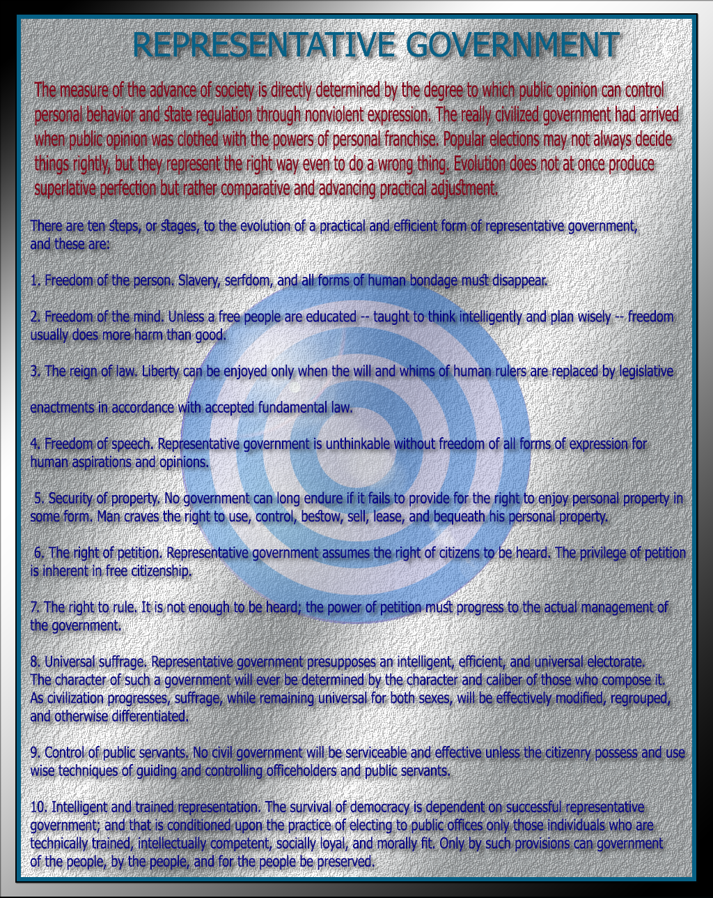 Ten Steps or Stages True Representative Government