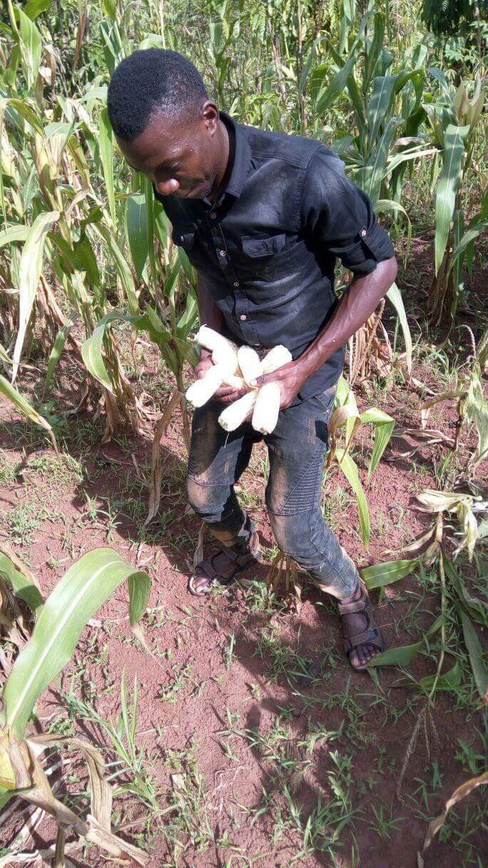 Collecting maize to roast for two old man and woman i met here.