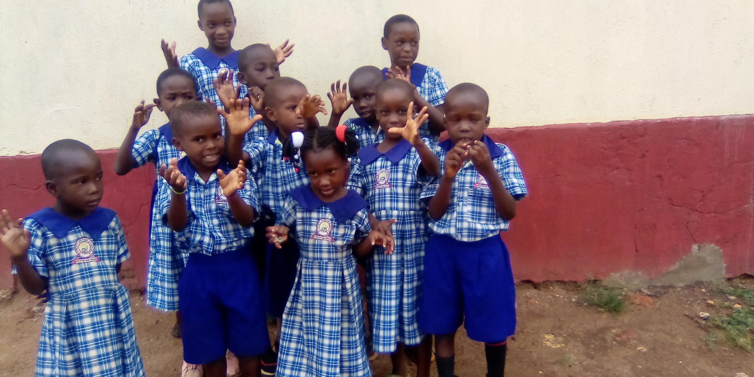 our children posing after recieving uniforms from good samaritian.