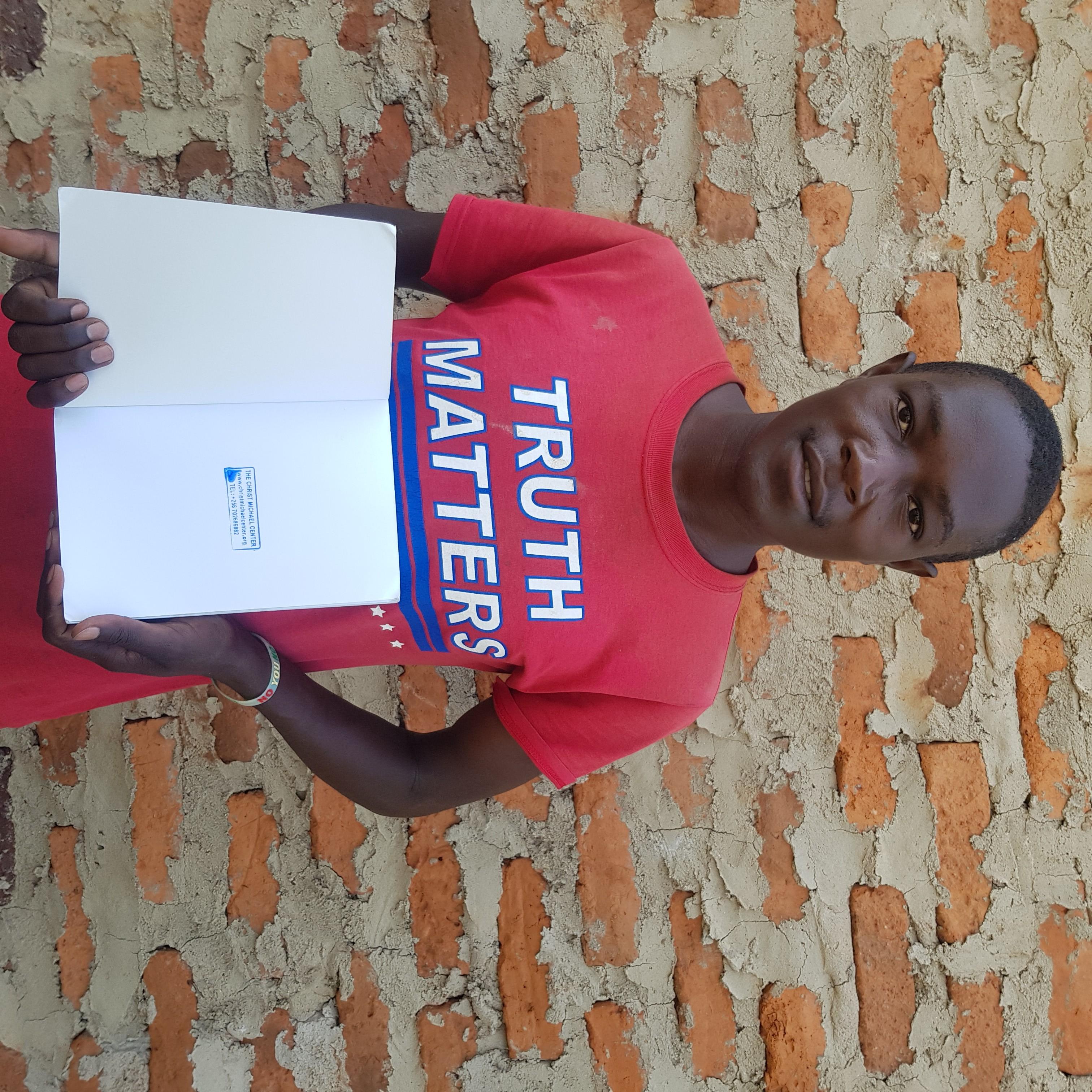 In red is Derrick receiving a copy from me, in white T-shirt is Tugume and the other receiving 6 copies is brother George of kigezi kabale