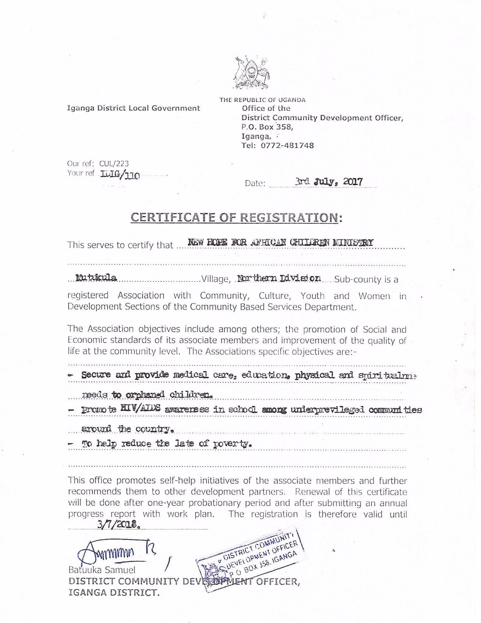 Nkuutu Samuel ○ New Hope for African Children Ministry ~ There are over one million orphan children in Uganda because of the AID's epidemic. Please consider becoming involved in the NGO/CBS (Non Government Organization / Community Based Services) that are attempting to care for these children.