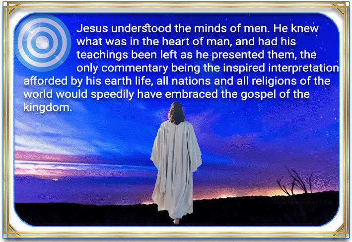 Jesus understood the minds of men. He knew what was in the heart of man, and had his teachings been left as he presented them, the only commentary being the inspired interpretation afforded by his earth life, all nations and all religions of the world would speedily have embraced the gospel of the kingdom.