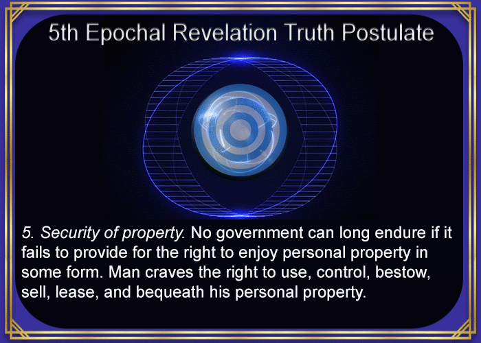 5. Security of property. No government can long endure if it fails to provide for the right to enjoy personal property in some form. Man craves the right to use, control, bestow, sell, lease, and bequeath his personal property.