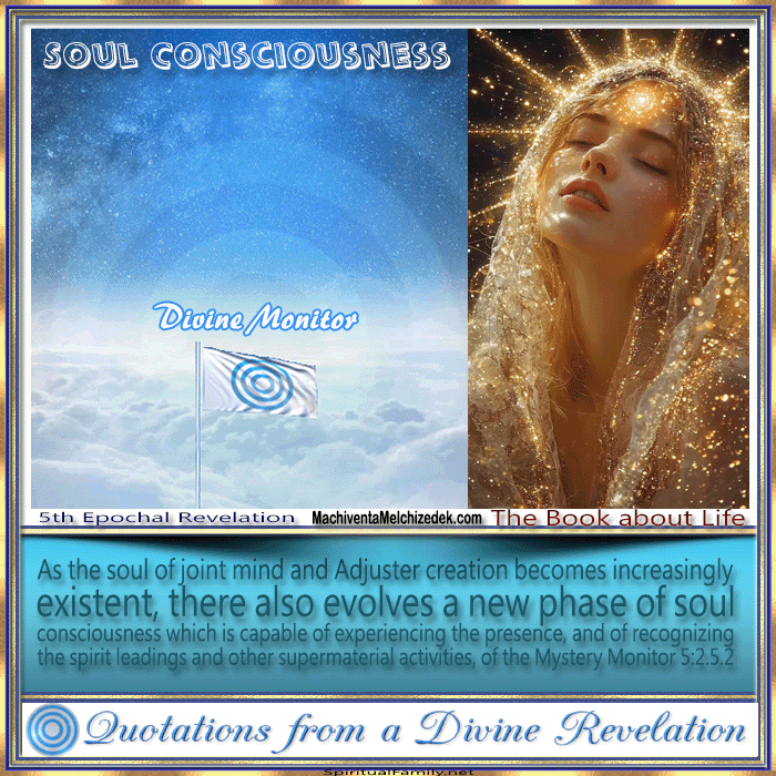 As the soul of joint mind and Adjuster creation becomes increasingly existent, there also evolves a new phase of soul consciousness which is capable of experiencing the presence, and of recognizing the spirit leadings and other supermaterial activities, of the Mystery Monitor 5:2.5.2