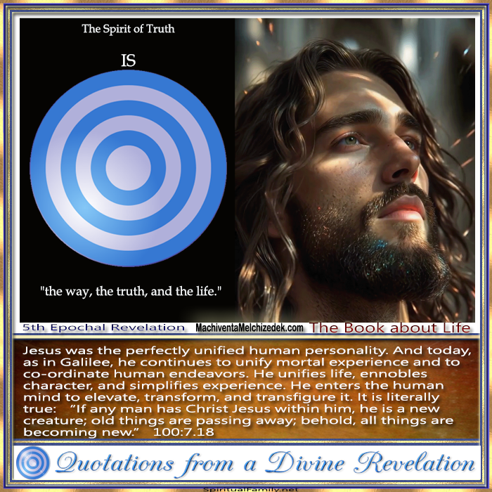 Jesus was the perfectly unified human personality. And today, as in Galilee, he continues to unify mortal experience and to co-ordinate human endeavors. He unifies life, ennobles character, and simplifies experience. He enters the human mind to elevate, transform, and transfigure it. It is literally true: “If any man has Christ Jesus within him, he is a new creature; old things are passing away; behold, all things are becoming new.” 100:7.18