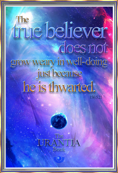 The true believer does not grow weary in well-doing just because he is thwarted. 156:5.21 https://mm.spiritualfamily.net/Urantia_Book-Online_Reader-2019/Paper_156.html#156:5.21