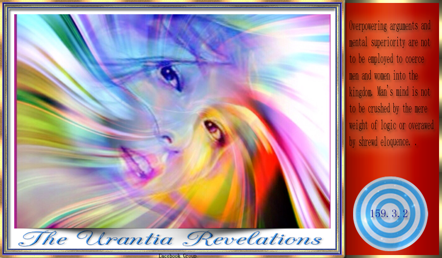 Overpowering arguments and mental superiority are not to be employed to coerce men and women into the kingdom. Man's mind is not to be crushed by the mere weight of logic or overawed by shrewd eloquence. 159:3.2