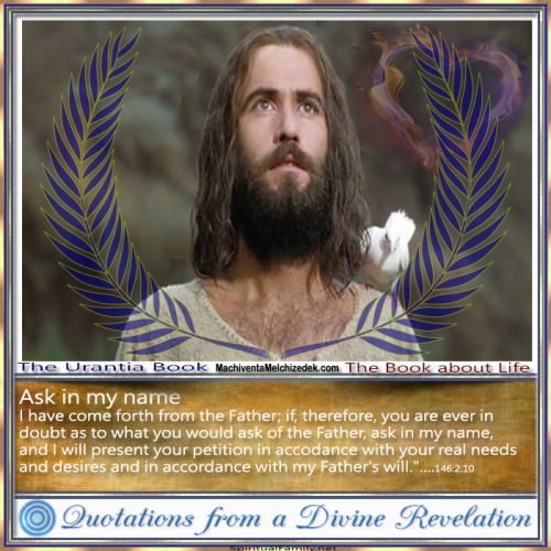I have come forth from the Father; if, therefore, you are ever in doubt as to what you would ask of the Father, ask in my name, and I will present your petition in accordance with your real needs and desires and in accordance with my Father's will."....146:2.10