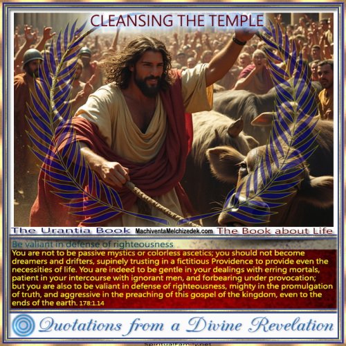 You are not to be passive mystics or colorless ascetics; you should not become dreamers and drifters, supinely trusting in a fictitious Providence to provide even the necessities of life. You are indeed to be gentle in your dealings with erring mortals, patient in your intercourse with ignorant men, and forbearing under provocation; but you are also to be valiant in defense of righteousness, mighty in the promulgation of truth, and aggressive in the preaching of this gospel of the kingdom, even to the ends of the earth. 178:1.14