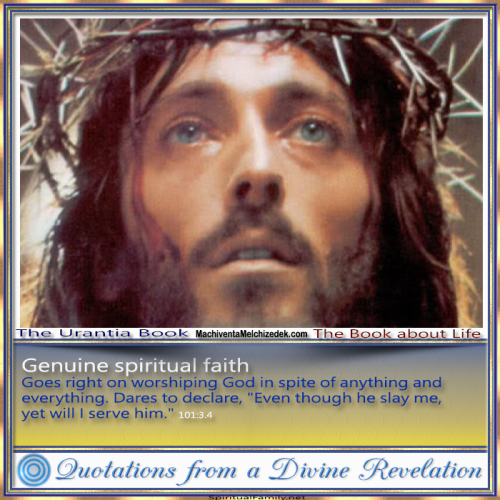 Goes right on worshiping God in spite of anything and everything. Dares to declare, "Even though he slay me, yet will I serve him." 101:3.4